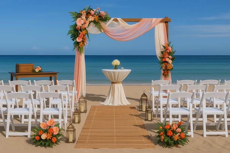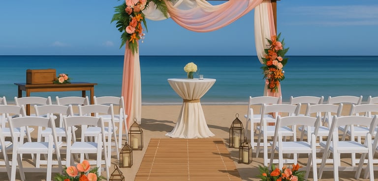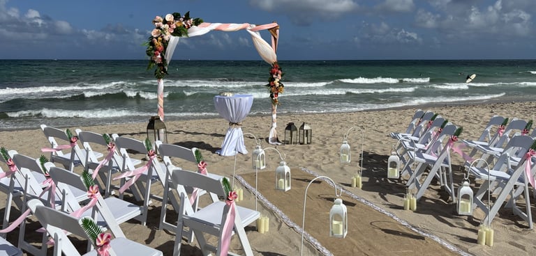 We specialize in creating unforgettable beach ceremonies with elegant arches, chairs, and caring officiants — so you can focus on what matters most: each other.