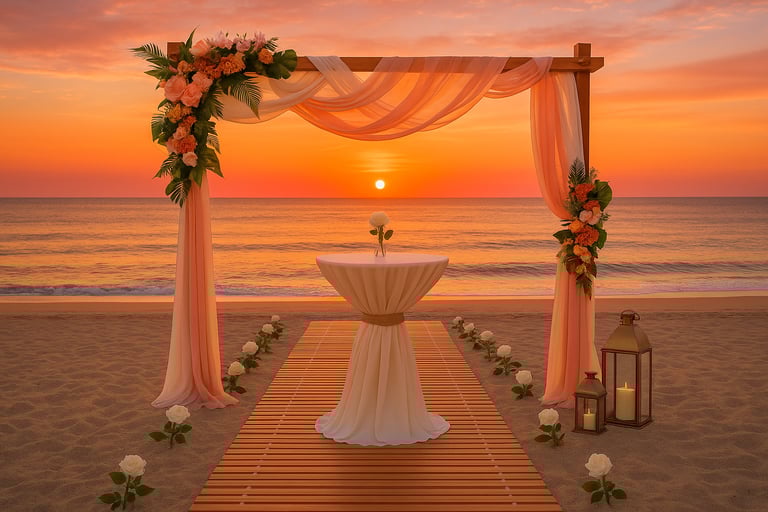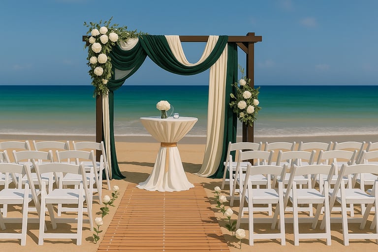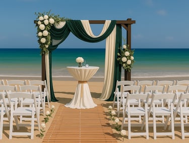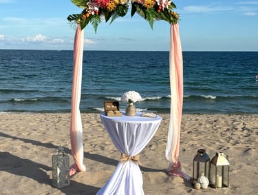 The Custom Signature Package is our most exclusive offering, built entirely around your vision, style, and preferences. Whether you dream of a sunrise ceremony on a quiet beach or a sunset setup with custom florals and a live musician, we’ll bring it to life with care, creativity, and elegance.