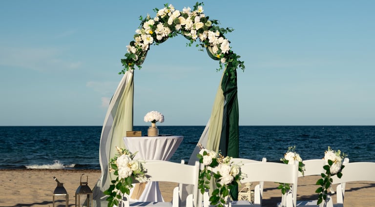 We specialize in creating unforgettable beach ceremonies with elegant arches, chairs, and caring officiants — so you can focus on what matters most: each other.