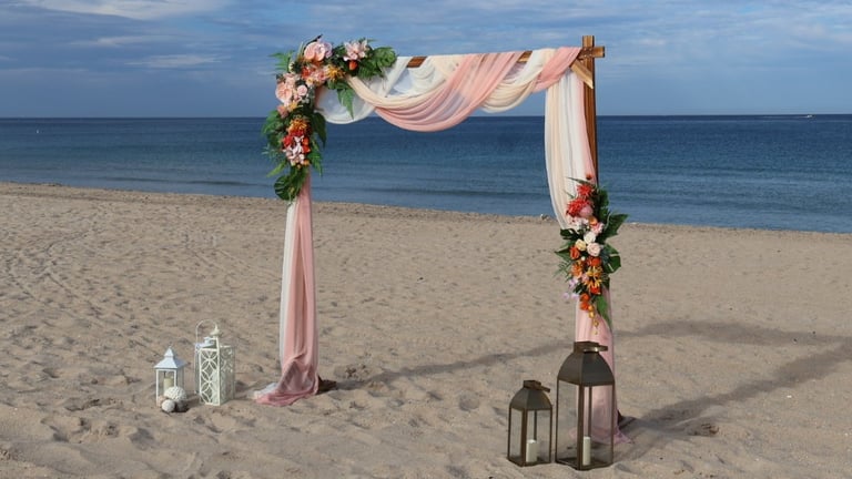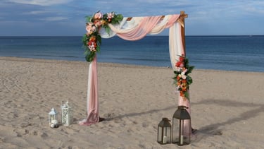 Our Seaside Love package was created for couples who want a stylish, meaningful beach ceremony without going over the top. It offers a beautiful balance of elegance and simplicity — with touches of floral décor, photos, and your choice of colors.